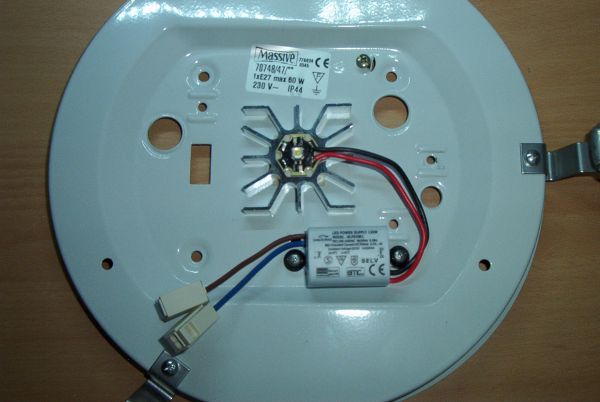Das Vorschaltgerät habe ich dann an die LED angelötet und die 230V Seite mit Steckklemmen versehen.