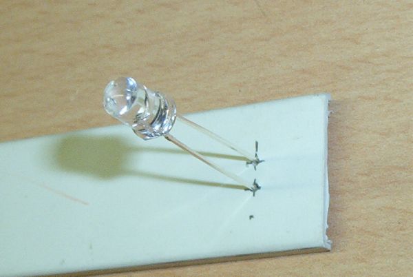 Dann habe ich 2 Löcher für die Beinchen der LEDs angezeichnet.