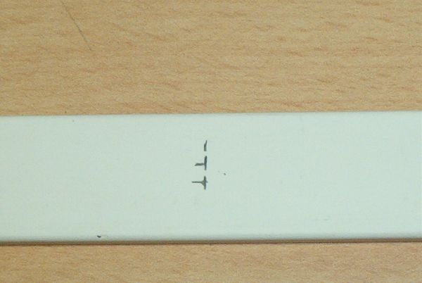 Zunächst habe ich die 5 Positionen, an denen die LEDs an den Kabelkanal kommen, angezeichnet.
