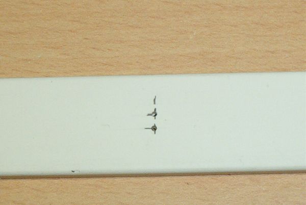 Und mit einem 1mm Bohrer die Löcher gebohrt.