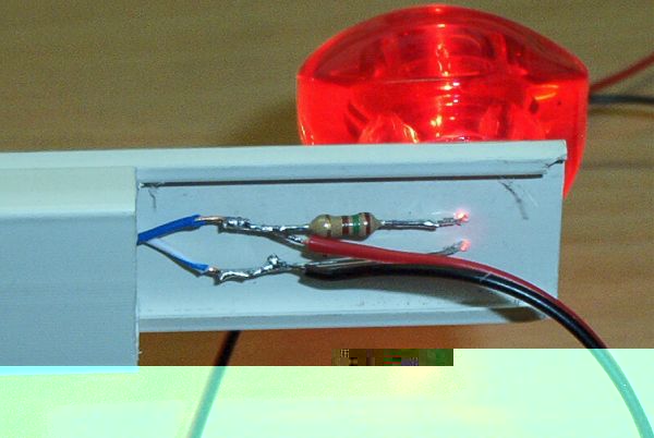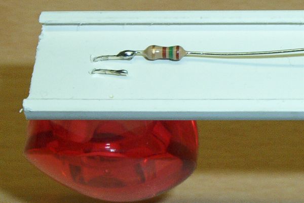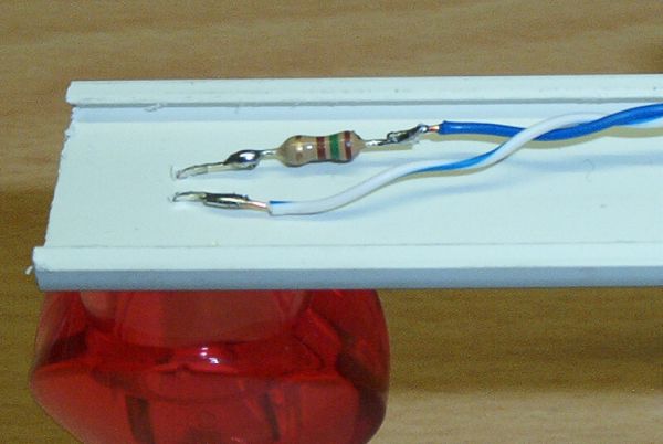 Die Zuleitung habe ich dann immer abisoliert und an die LED und den Widerstand angelötet.