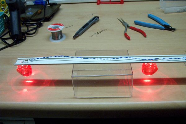 Dann habe ich die Deckel auch mit Sekundenkleber über die LEDs am Kanal befestigt.