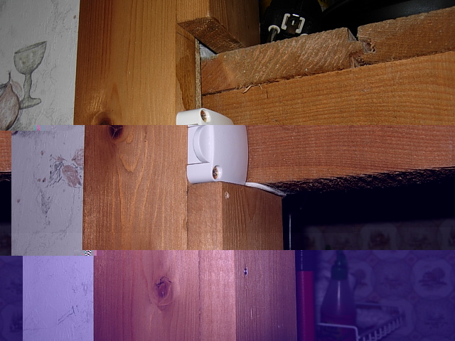 Die SuperFlux-LED Leisten habe ich mit Heißkleber an den Regalböden befestigt und eine kleine Holzleiste davor als Blende: