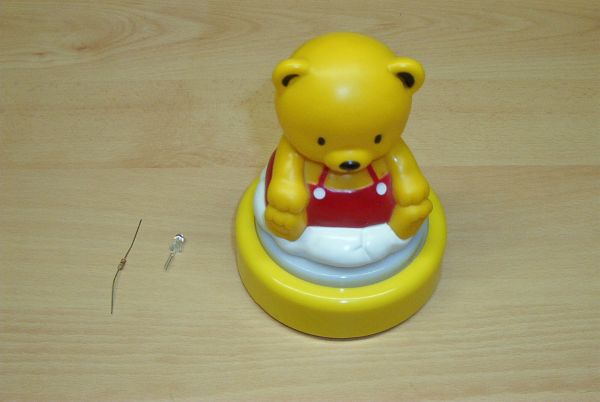 Die Batterien des Nachtlichtes meiner Tochter gehen zu schnell leer, also flux das Glühobst raus und eine LED rein!