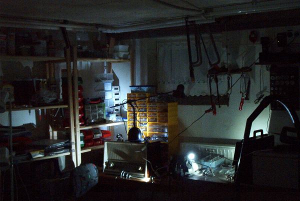 Habe nur mal zum testen die Lampen in der Werkstatt verteilt, ergebnis der Ausleuchtung (ohne Blitz):