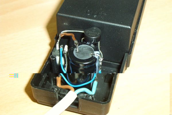 Dann die Zuleitung zu den LEDs direkt drann gelötet und den Trafo wieder zusammen geschraubt